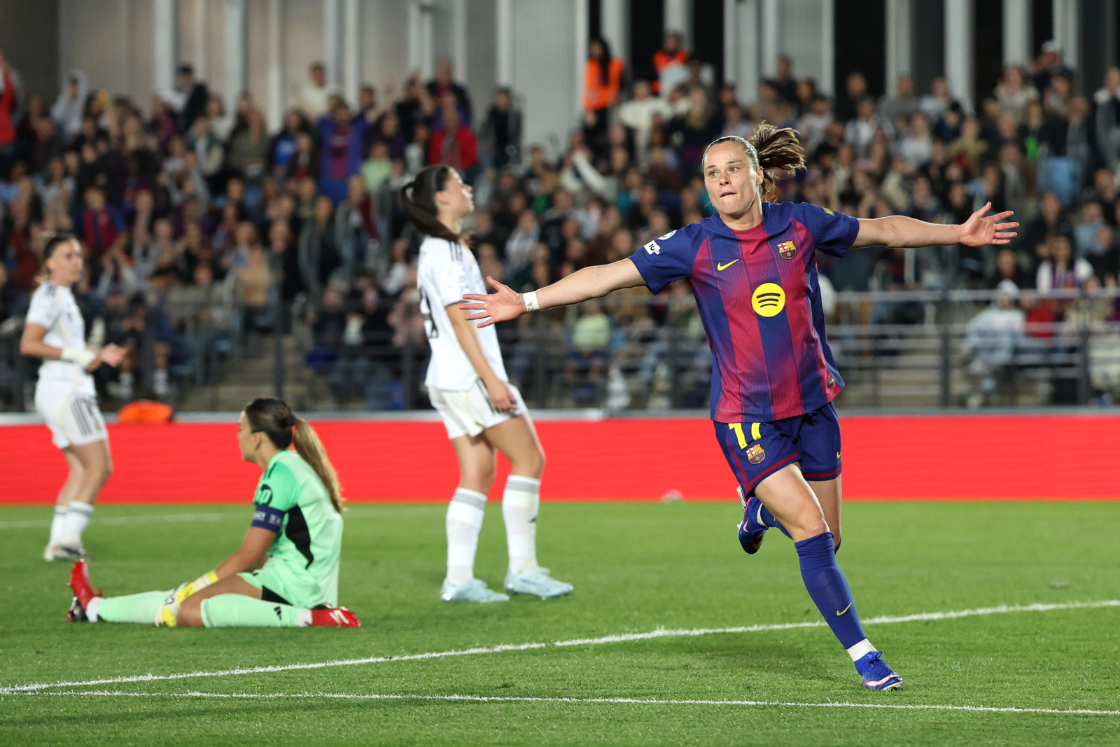 Con el segundo tiempo en marcha, las azulgranas siguieron aumentando su ventaja con el cuarto tanto, gracias al fantástico doblete de Ewa Pajor, que ya suma la friolera de 13 dianas en 9 partidos disputados ante el Real Madrid.