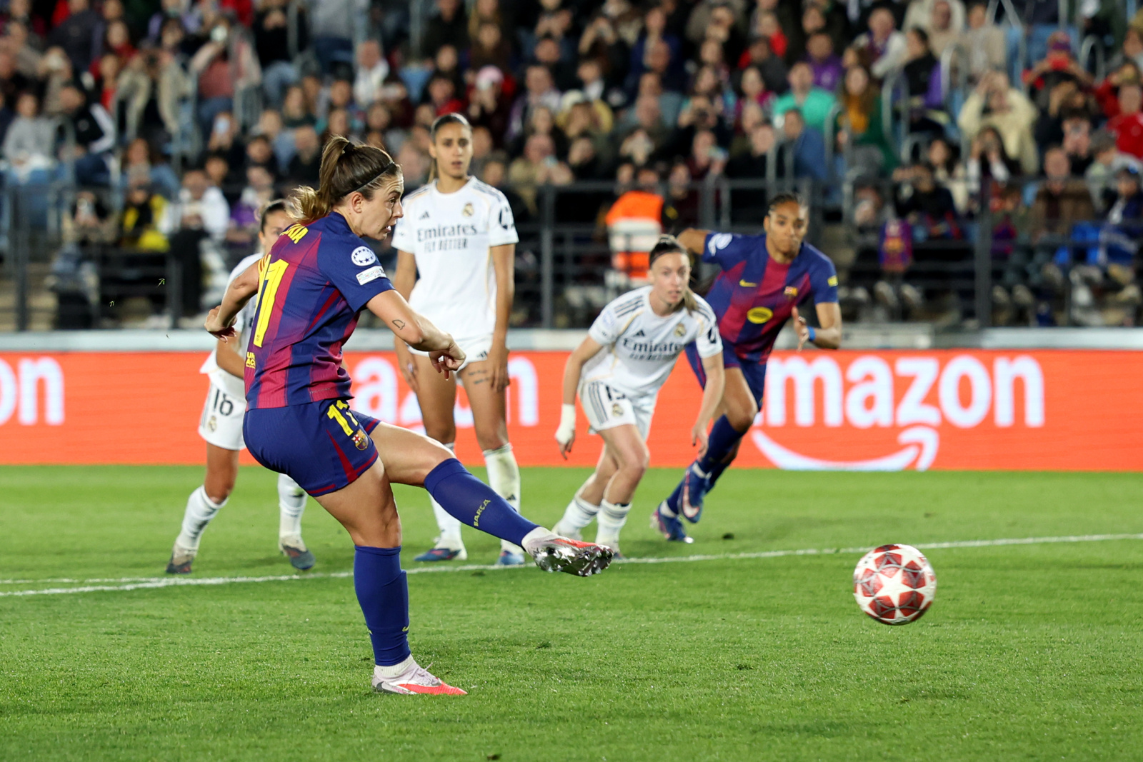 La capitana, MVP del partido, engañó por completo a una Misa que se lanzó hacia el lado opuesto, para enviar el cuero con tranquilidad hacia el ángulo inferior derecho de la portería, firmando así su gol número 13 ante el Madrid.