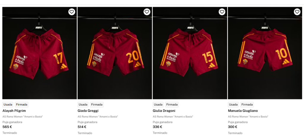 Aquí viene el giro incómodo. En febrero de 2026 estalló el debate: subastas de pantalones usados de la AS Roma Women con pujas que, según reportes, superaban con facilidad el valor de camisetas (y en algunos casos, llamativamente, también el de prendas equivalentes del masculino).