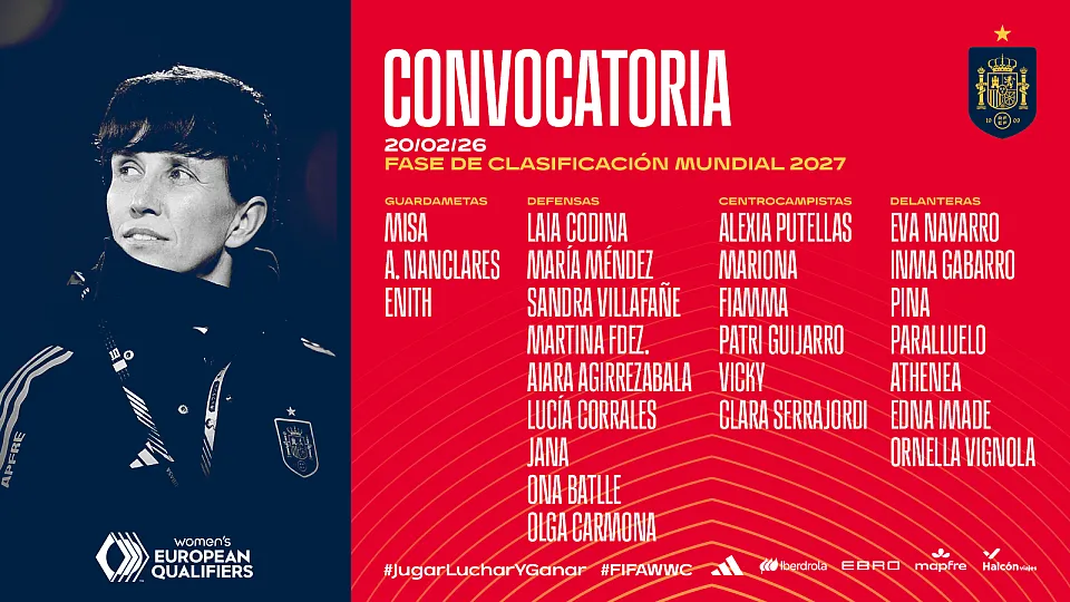 La principal novedad está en la portería: regresa Misa Rodríguez, que vuelve a una lista tras no entrar en convocatorias desde los Juegos Olímpicos de 2024. Su presencia llega, además, en un contexto de cambios obligados bajo palos por la baja de Cata Coll.