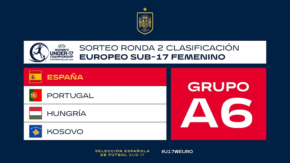 La selección española sub-17 femenina se enfrentará a Portugal, Hungría y la Federación de Kosovo en el Grupo A6 de la segunda ronda clasificatoria para el Campeonato de Europa.