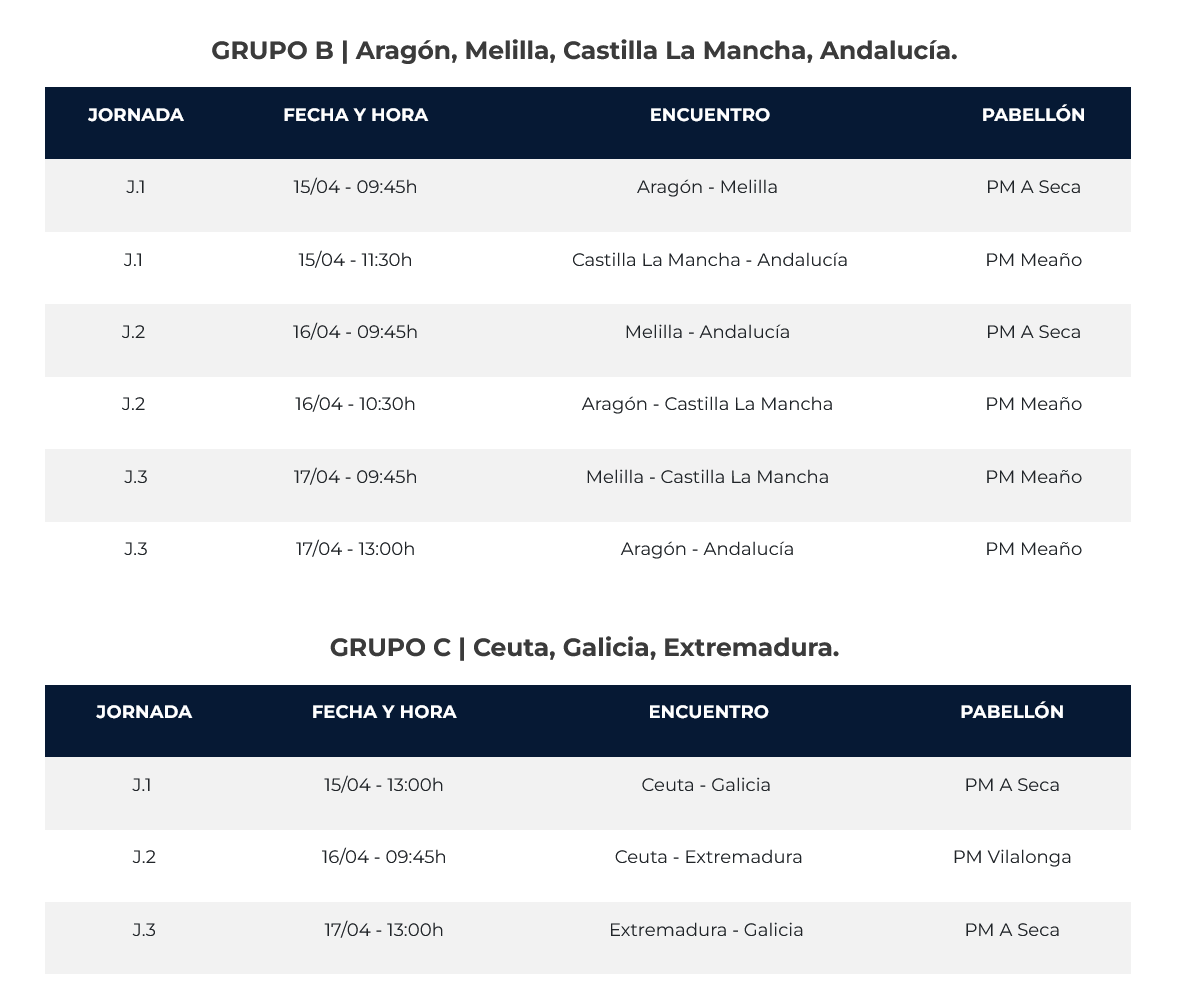 - Final Four A: Las tres primeras clasificadas y la mejor segunda lucharán por el campeonato.