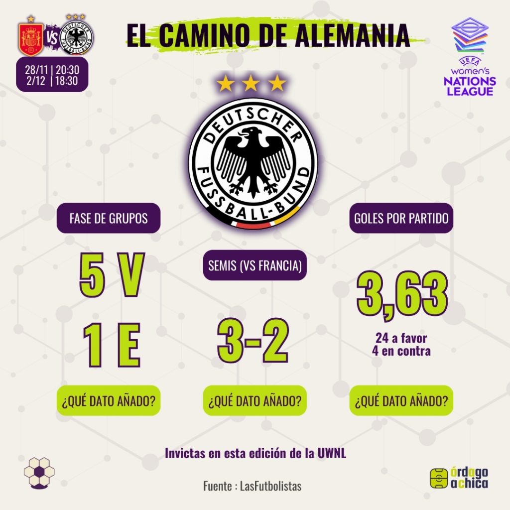 Alemania llega invicta en la UWNL, pero con racha reciente muy irregular en grandes torneos.
