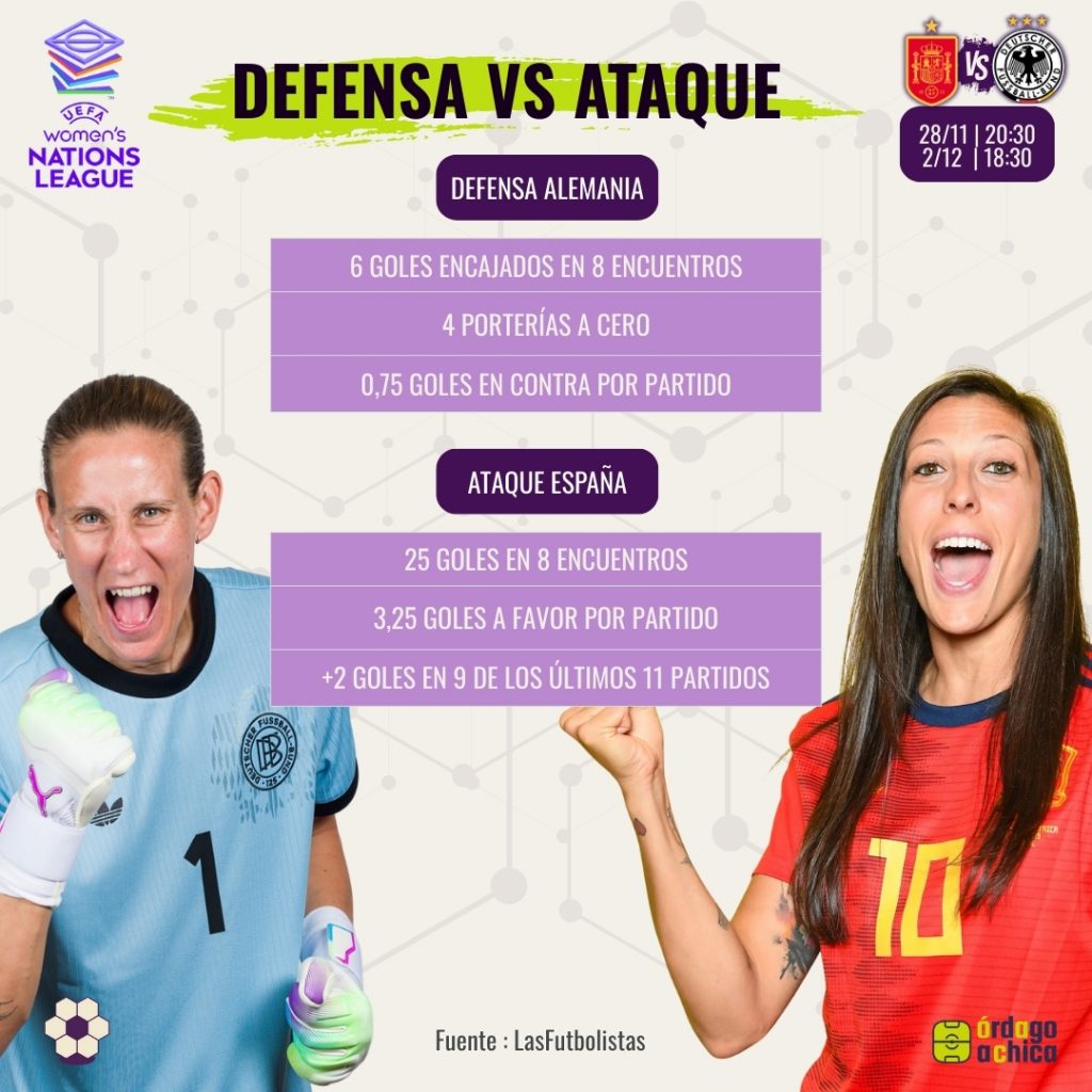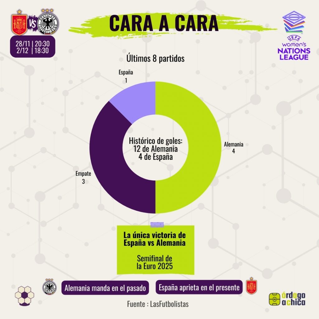 Choque entre la vigente campeona del mundo y de la UWNL (España) y una Alemania histórica, con la sensación de que el ciclo se está equilibrando a favor de la Roja, pero con datos que dicen que las alemanas siguen siendo una roca.