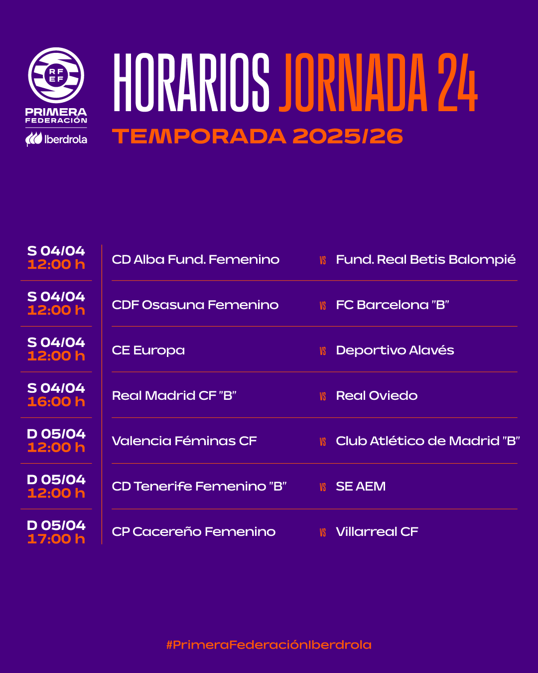 La Primera Federación Iberdrola entra en su recta final con solo nueve puntos por disputarse y todo aún abierto en la lucha por el ascenso directo, los playoffs y la permanencia. El mes de abril arranca con una jornada 24 cargada de tensión, donde cada punto puede marcar el destino de clubes y comunidades enteras.